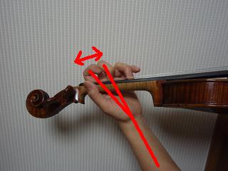 ビブラートするときに、手首から低音側に手の甲を倒すので、指場伸び気味になって、指腹で弦を押さえる格好になります。